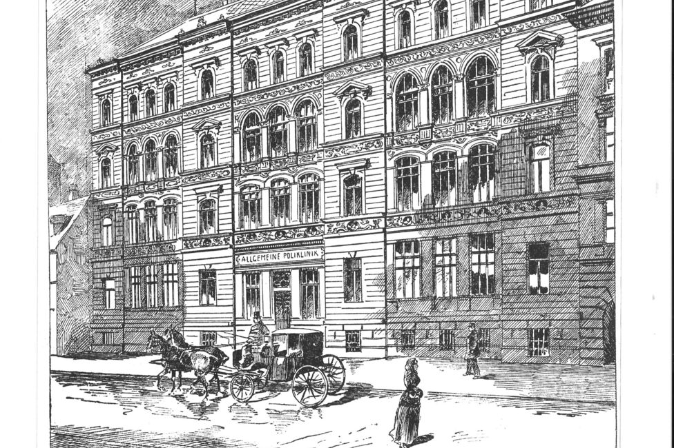 In 1892, the General Polyclinic moved from Schwarzspanierstraße to the site at Mariannengasse 10. It had been set up 20 years previously by 12 idealistic young university assistants, who wanted to improve the medical care offered to poor patients and, at the same time, to facilitate teaching and research work. 12,000 patients were treated free of charge in the first year alone – this was a pioneering model for the whole of Europe. Gradually departments were created for admitting patients and the "x-ray cabinet", which was introduced in 1896, developed to become the first Institute of Radiology in Austria in 1904.