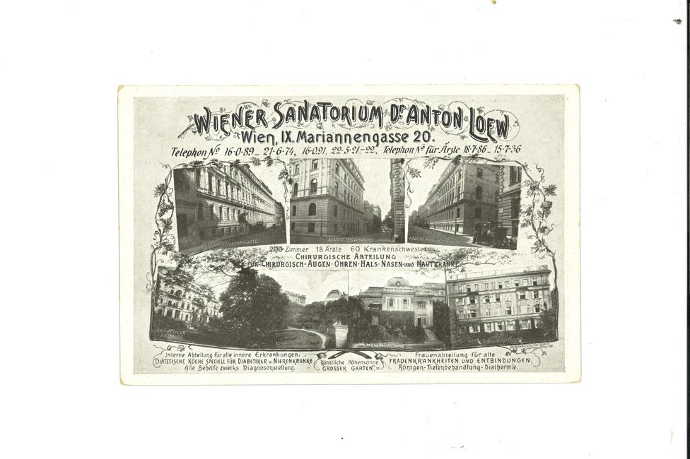 On the other hand, people who needed surgery and had the means to pay for it, went to the exclusive Loew Sanatorium. The initially modest private hospital was first located in the second district and was founded by Dr. Heinrich Loew in 1859. Its transfer to Mariannengasse 20 saw the opening of the first private sanatorium for surgical diseases in 1882 and this continued to expand until 1906. In 1905, it was floated on the stock market and the hospital became a public limited company. Additional houses were bought up and the sanatorium grew rapidly, soon becoming one of the most famous hospitals in the world. Even members of the Emperor’s family went there for treatment.