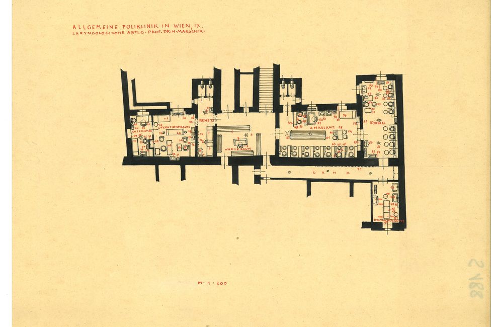 It was only natural that many medical practitioners of the time flocked to the so-called "hospital district" in Alsergrund, which grew up around the old General Hospital. They opened practices or even entire clinics. Such was the case on Mariannengasse, which at one time was home to two hospitals, together taking up as much floor area as courtyards 8 and 9 of the neighbouring General Hospital.