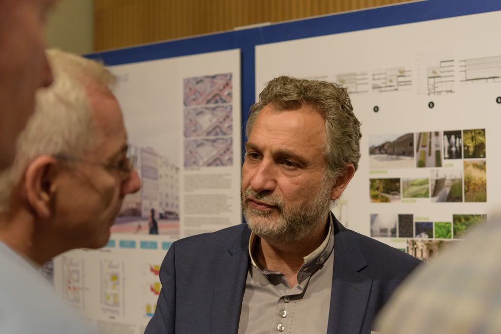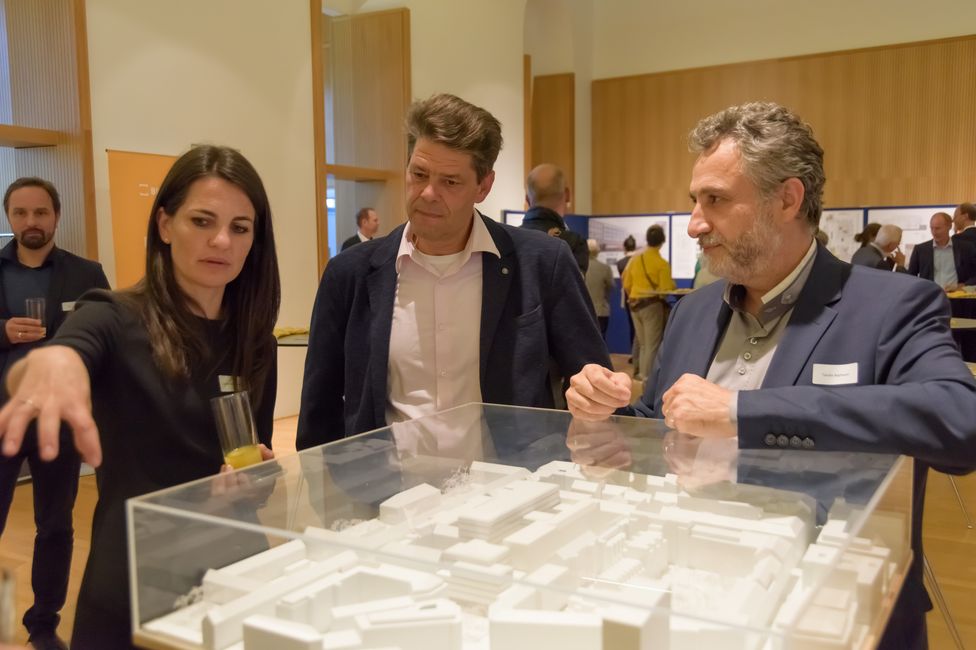Erste Einblicke in das Projekt MedUni Campus Mariannengasse boten Schautafeln, die über Standort, Architektur, Höhen und Landschaftsplanung informierten. Wie sich das Ensemble in die umliegenden Straßenzüge einfügt, wurde anhand des Architekturmodells verdeutlicht. Für Fragen aller Art stand Tarafa Baghajati zur Verfügung. Er begleitet das Projekt als Ombudsperson über die kommenden Jahre.