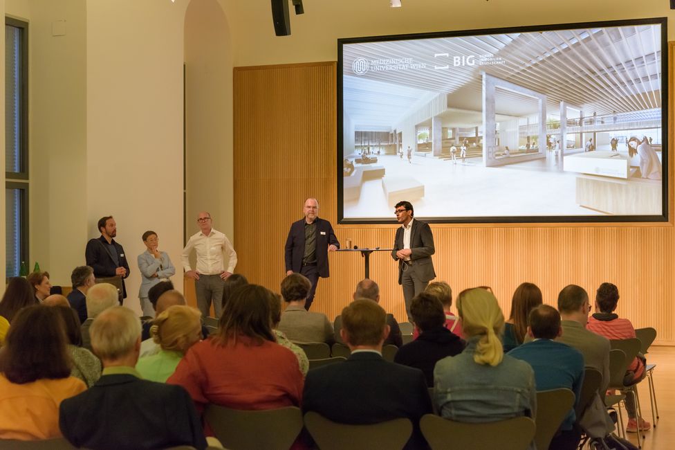 Vergangenen Mittwoch hatten die Anrainer die Möglichkeit, sich umfassend über das Projekt zu informieren. Rund 100 künftige Nachbarn folgten dem Angebot der BIG, der Universität und des Bezirks und machten sich im Van Swieten-Saal der MedUni Wien ein Bild von den geplanten Maßnahmen.