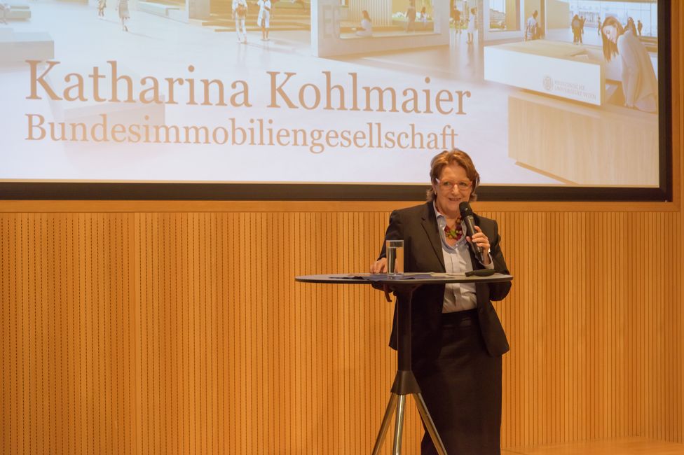 Katharina Kohlmaier, die als Leiterin des Unternehmensbereich Universitäten die BIG vertrat, stellte die Expertise der BIG im Hochschulbau vor und betonte, dass "die Investition in den Bildungsraum auch eine Investition in die Zukunft ist. Das hat enorme Auswirkungen auf die Qualität des Lernens und Lehrens."